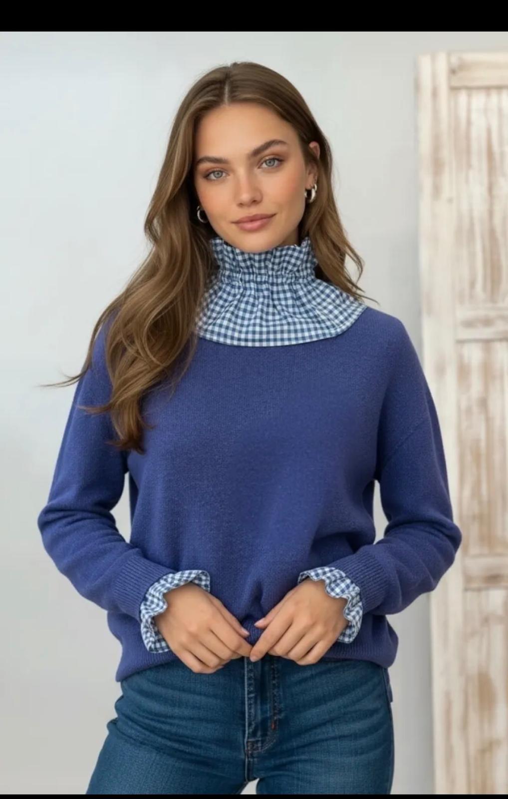 Cuello y puños azul