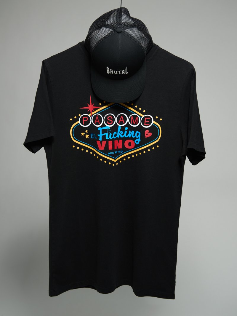 Camiseta básica negra con ilustración Fucking Vino. Es tan nosotros que teníamos que dejar constancia!