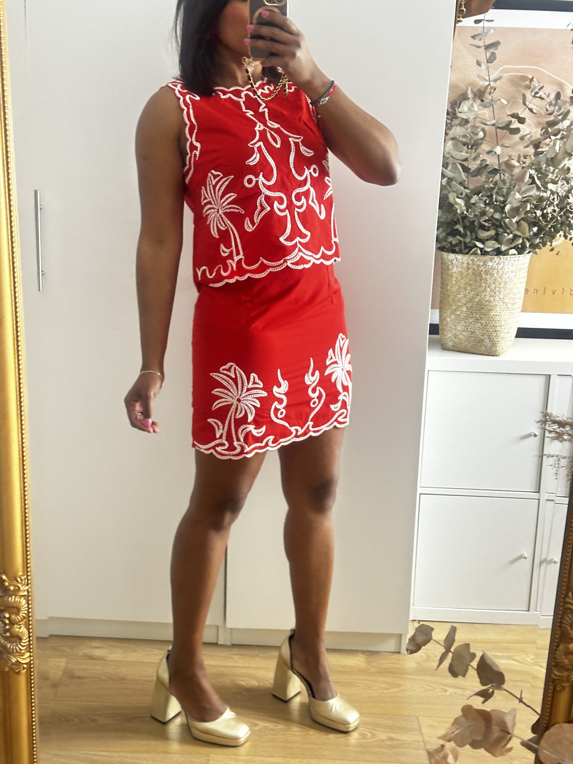 Conjunto falda y top con detalles bordados