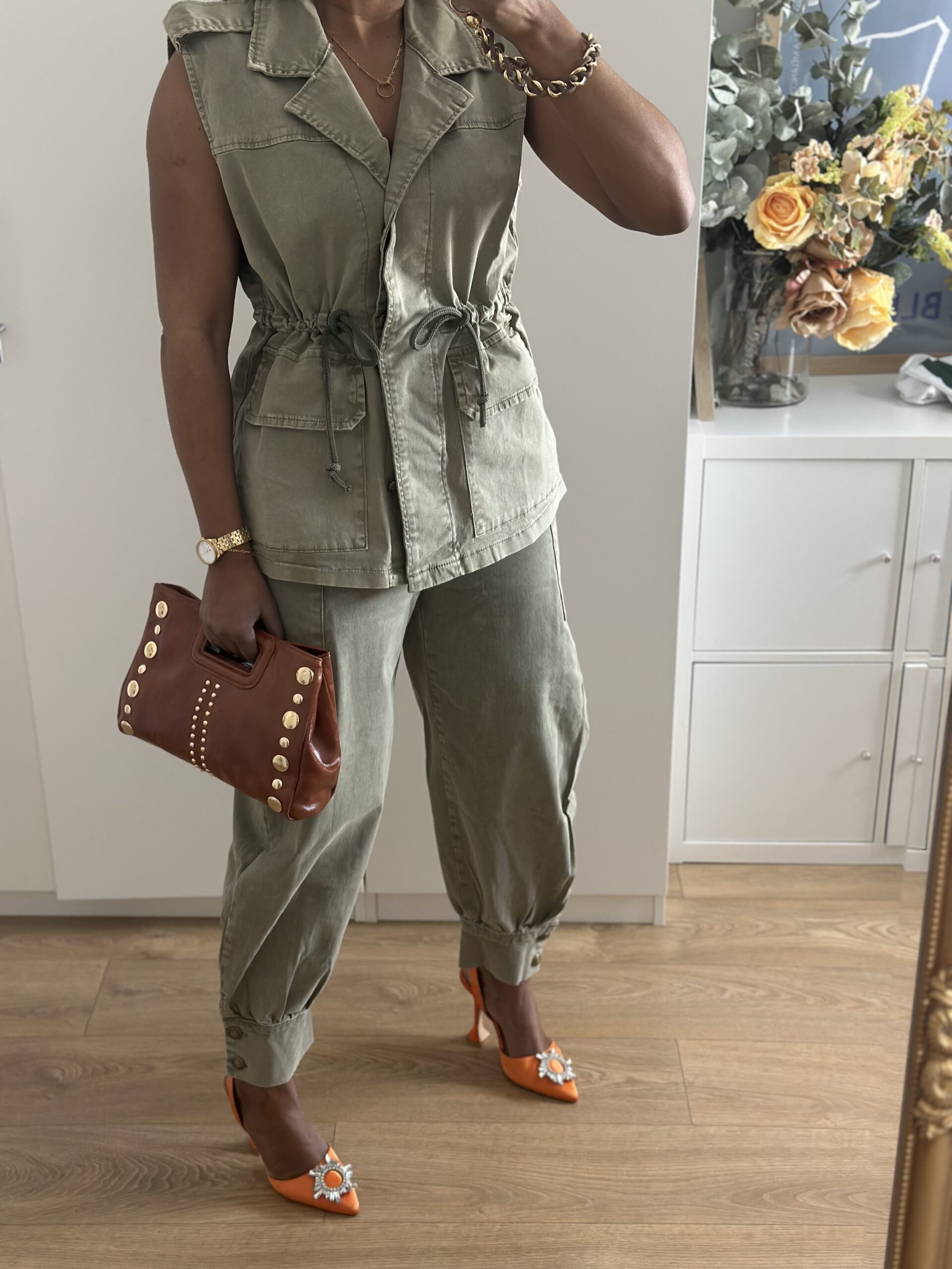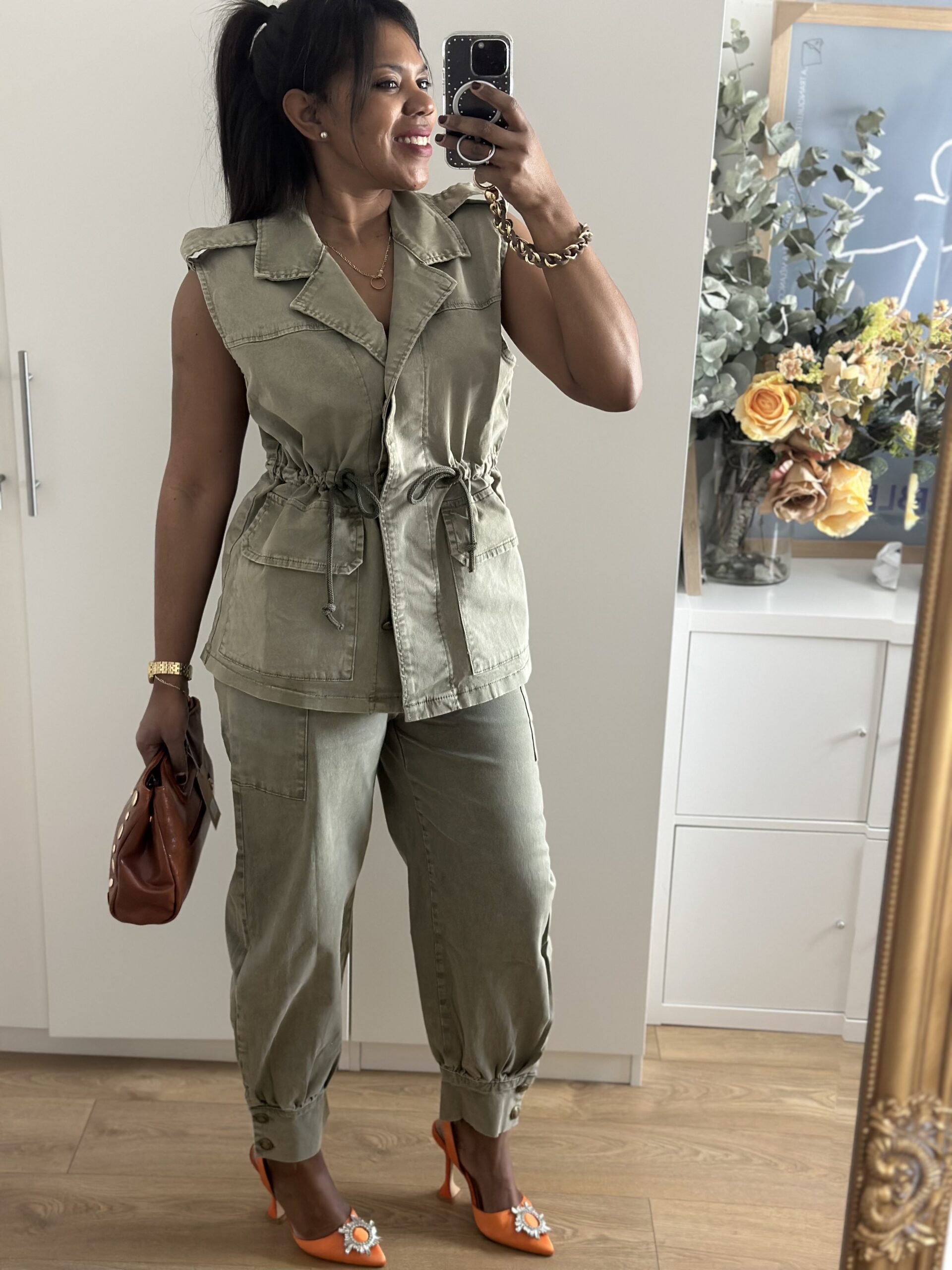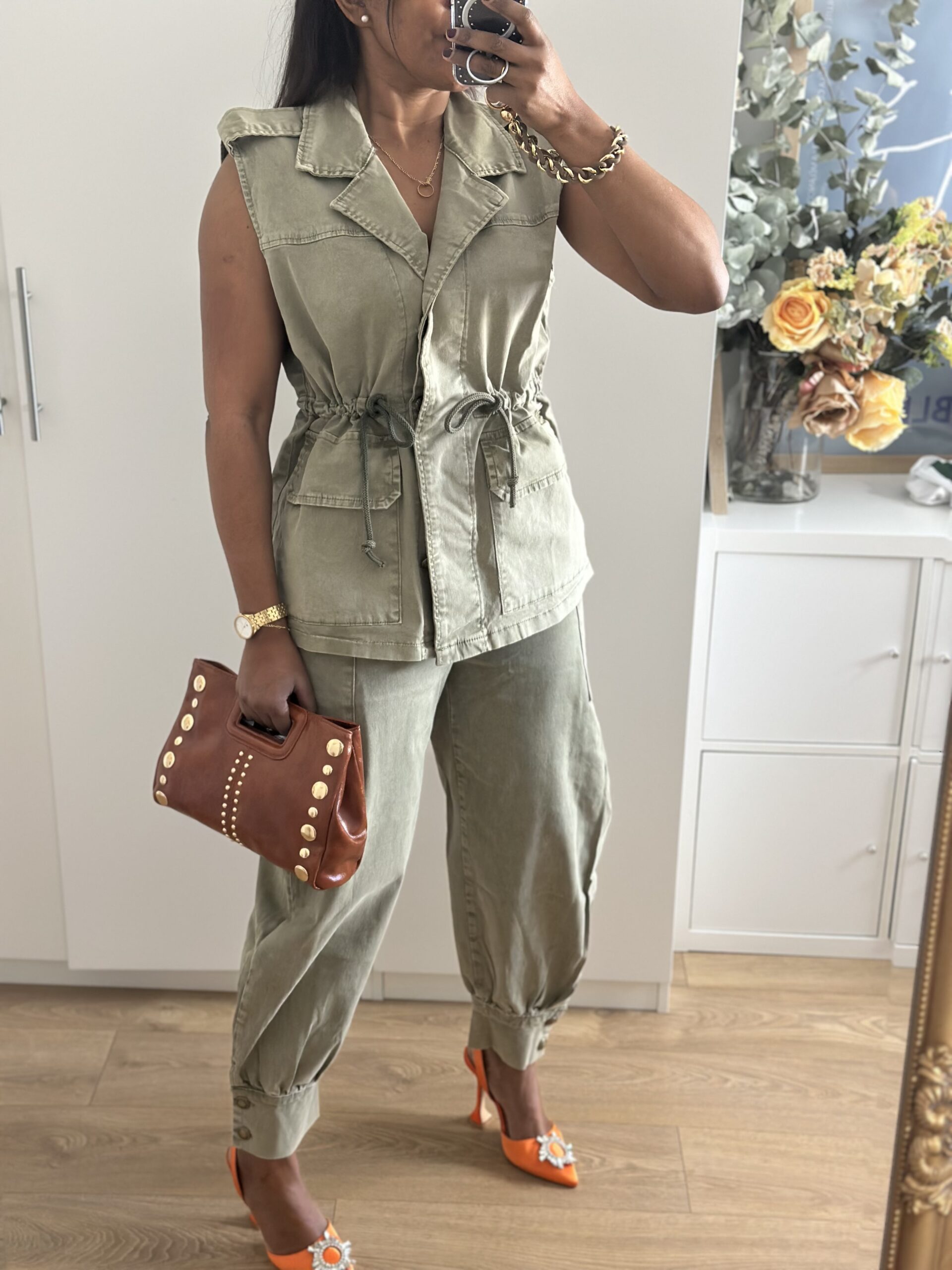 Conjunto denim compuesto por chaleco Maxi estilo cargo y pantalón cargo con elastano , bolsillos laterales y ajustado en tobillos, sientan de maravilla , corte perfecto para resaltar la silueta.