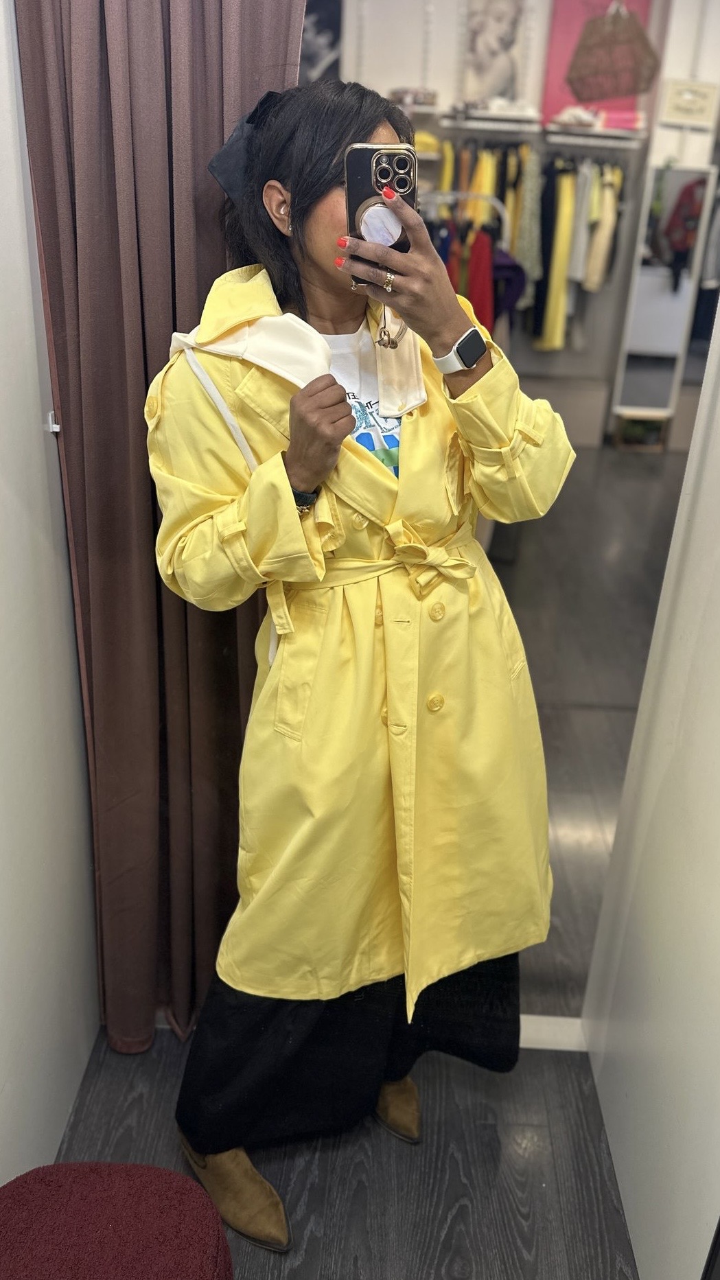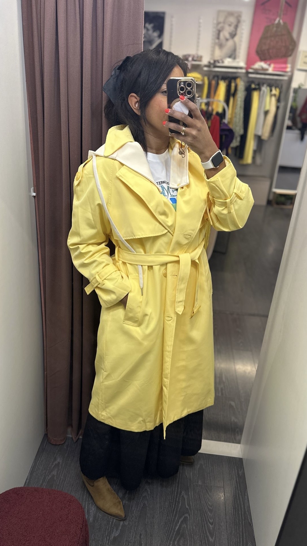 Gabardina amarilla, largo ideal, con dobles botones centrales y cinturón para ajustarse a tu figura, talla única, incluye capucha