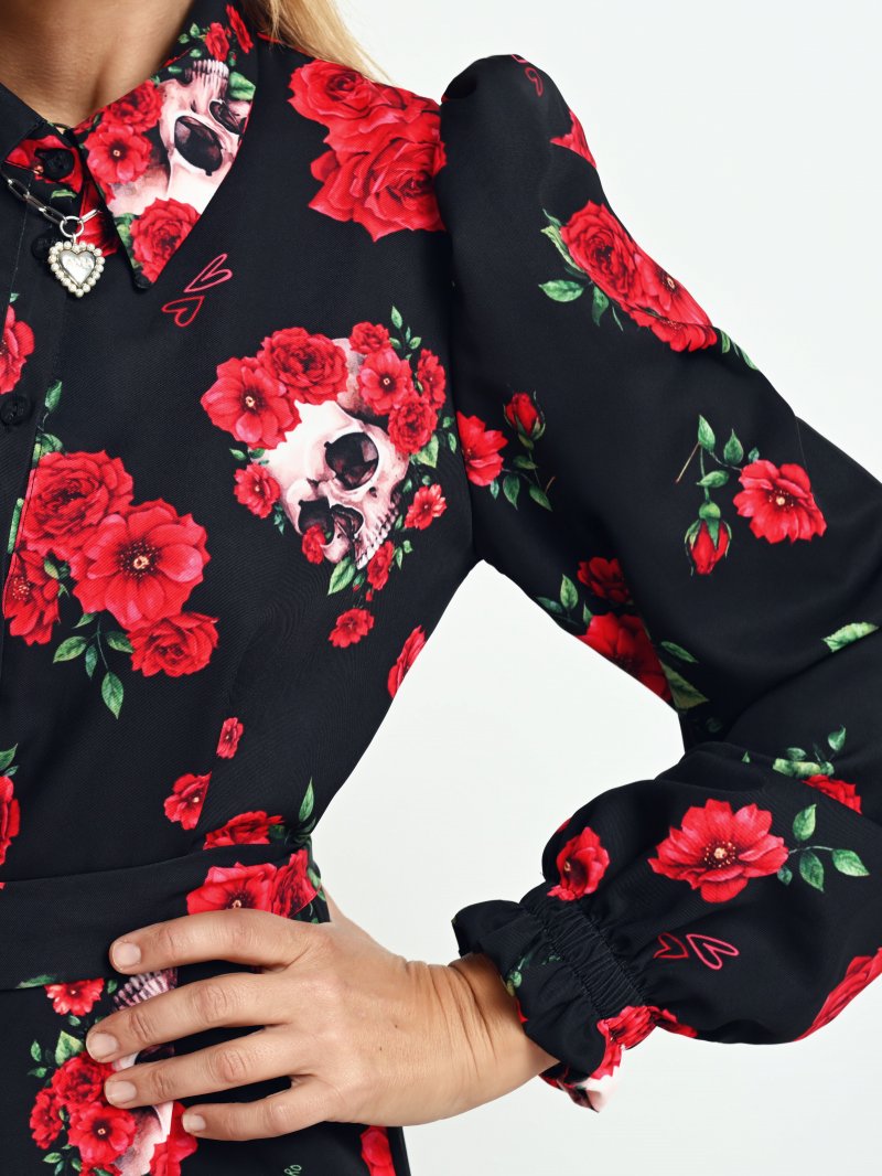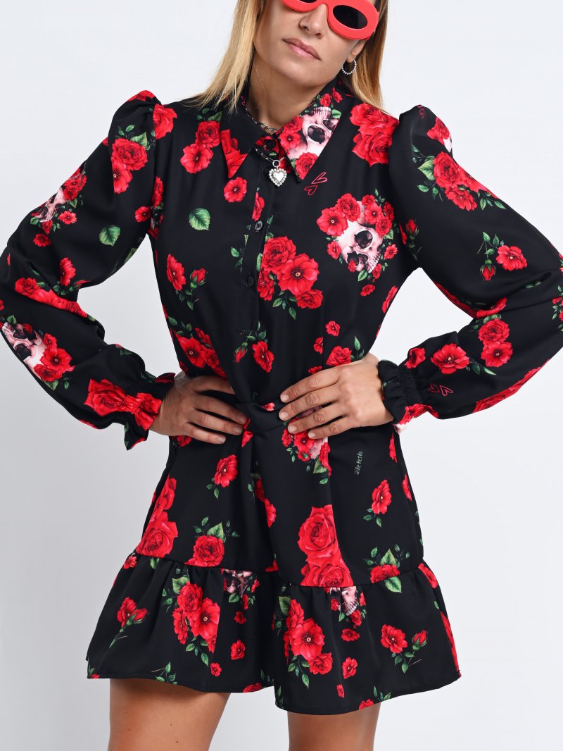 Vestido Rosas y calaveras corto